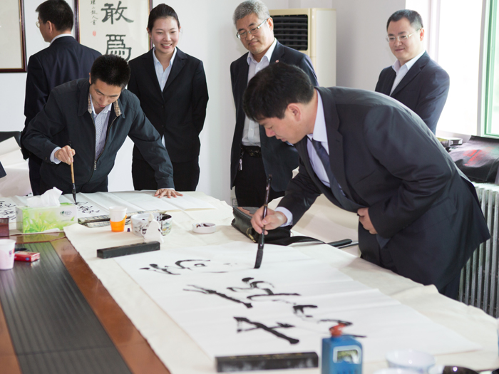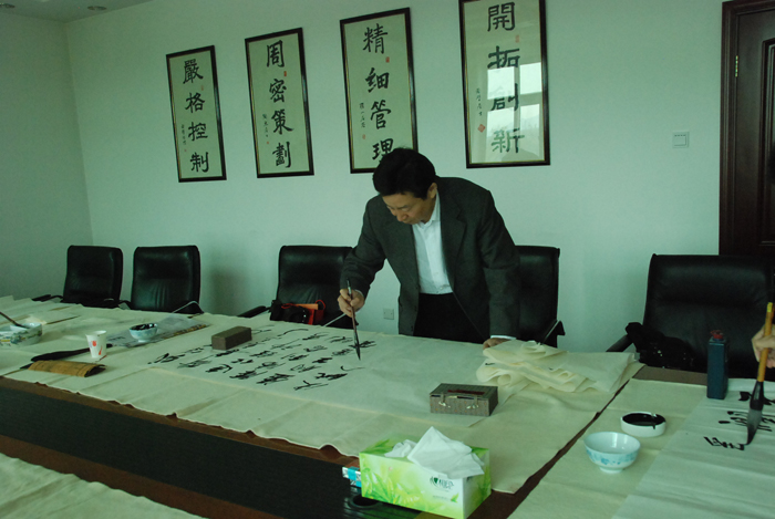 為弘揚傳統文化,豐富員工業余生活,5月6日上午,中航建設集團有限公司舉辦了首屆書畫藝術學習交流活動。本次活動邀請了中國書法家協會會員孟云飛博士、中國書法家協會理事張銅彥先生、中國書法家協會編輯出版委員會副主任王榮生教授、人民藝術家協會理事于瑛先生等國內知名書畫大師,各位書畫大師在活動現場進行了藝術創作表演,揮毫潑墨,交流技藝,為中航建設集團有限公司留下了數十副墨寶,還對部分員工的書畫作品進行了悉心指導。公司員工現場欣賞了書畫大師的藝術創作,并聆聽了有關書畫藝術鑒賞知識的介紹,部分員工還在活動現場進行創作,聽取書畫大師的講解示范和點評。