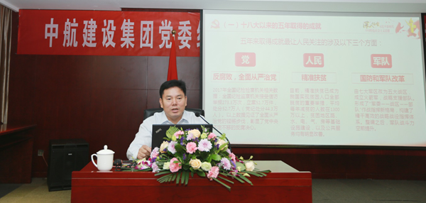 隨后,陳先瑞書記的黨課將此次活動推向了高潮。陳書記的授課從“中國特色社會主義進入新時代”“努力開創中航建設發展新格局”兩個層面入手,以新時代產生新思想,新思想引領跨入新征程為切入點,生動講述了十八大以來中國取得的輝煌成就,展示了中華民族從站起來、富起來到強起來的偉大飛躍;向全體中航建設人吹響了融入時代發展大潮、共建企業美好未來的集結號。陳書記號召大家必須順應時代的發展,做到學習新思想,忠誠勇當擔,以永不懈怠的精神狀態和一往無前的奮斗姿態,施展新作為,闊步新征程。