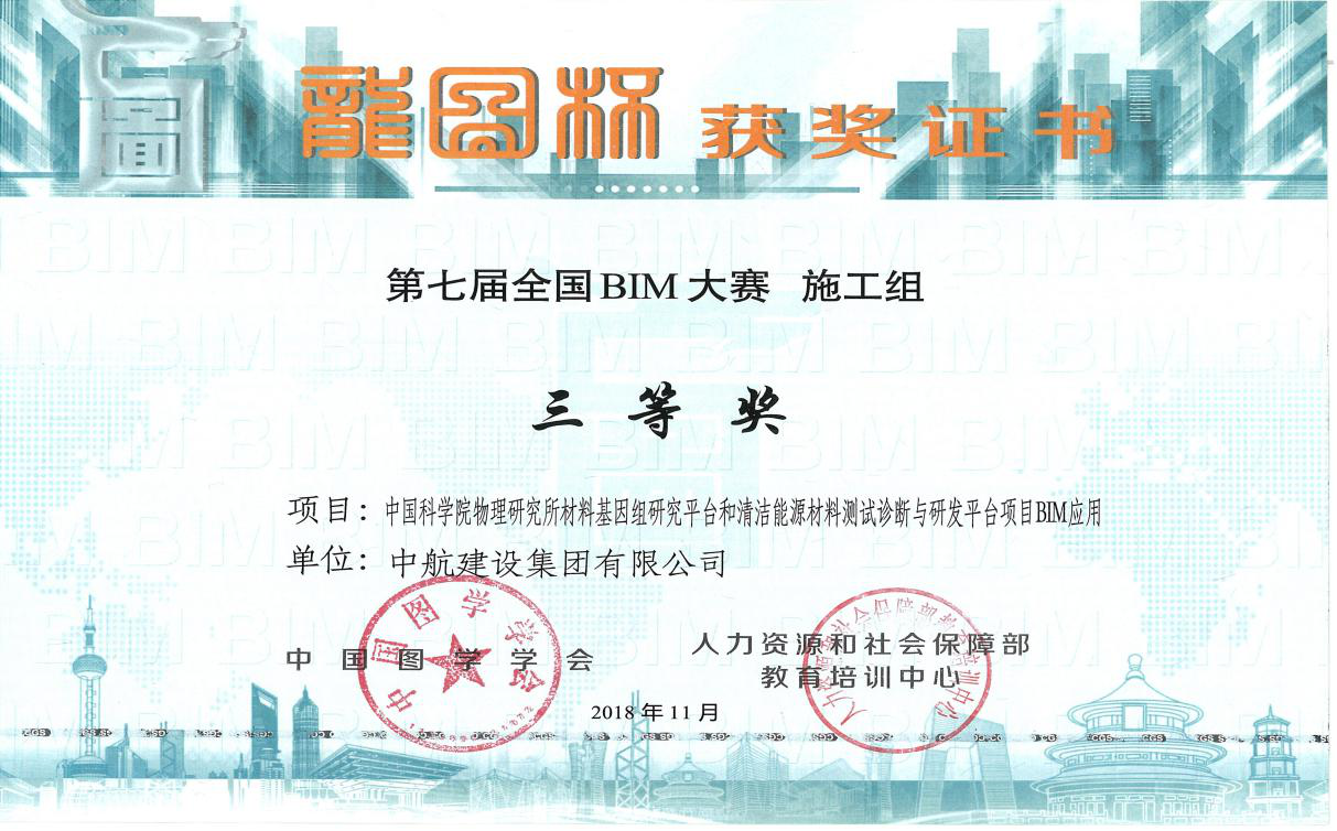 11月29日,在中國圖學學會于國家會議中心召開的第七屆“龍圖杯”全國BIM大賽頒獎典禮及高峰論壇上,我集團公司的“中國科學院物理研究所材料基因組研究平臺和清潔能源材料測試診斷與研發(fā)平臺項目BIM應用”成果及“科研及附屬用房等2項項目BIM應用”成果分別獲得三等獎和優(yōu)秀獎。