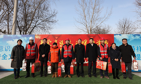 1月16日下午,懷柔區總工會在集團公司承建的一零一中學懷柔校區擴建項目部舉行“關愛建設者,溫暖科學城”暖心慰問活動。懷柔區委常委、組織部部長張闖,懷柔科學城黨工委委員、管委會副主任伍建民,區人大副主任、區總工會主席張書遠,區總工會黨組書記、副主席曹巖一行,看望科學城一線建設人員和后勤保障工作人員并發送慰問品,為大家帶來黨和政府的深切關懷和誠摯祝福。