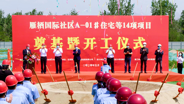 5月18日上午,由集團公司承建的雁棲國際社區A-01#住宅等14項工程項目在施工現場舉行奠基暨開工儀式。北京市長城偉業投資開發總公司黨委書記、董事長單景民,黨委副書記、總經理周志斌,北京懷柔科學城管委會開發建設處處長史忠峰,項目監理方、設計方領導,集團公司黨委書記、董事長陳先瑞,總經理王建紅共同出席。