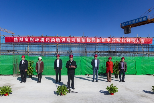 中國科學院生態環境研究中心黨委書記、主任歐陽志云在致辭中對項目的成功封頂表示祝賀,向為項目付出辛勤努力的參建各方表示衷心感謝,向日夜奮斗在建設工地的全體人員致以誠摯的問候。他希望全體參建人員把環境污染物識別與控制協同創新平臺封頂作為新的起點,在后續工程建設上嚴把工程質量關,在確保施工安全的前提下,爭取早日將項目順利竣工。