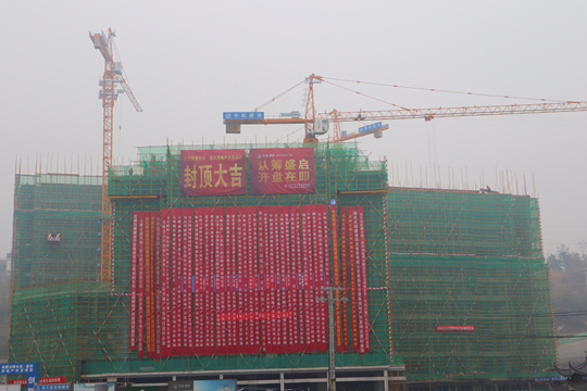 隨著最后一方混凝土澆筑完成,在項目參建單位的共同見證下,長樂·星辰住宅項目首棟主體結構順利封頂。