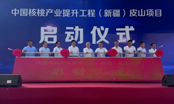 與會領導共同按下啟動鍵,標志著中國核桃產業提升工程(新疆)皮山項目正式啟動。新疆維吾爾自治區農業農村廳、林草局、中國糧油學會、和田地區、皮山縣有關領導和代表參加此次活動。